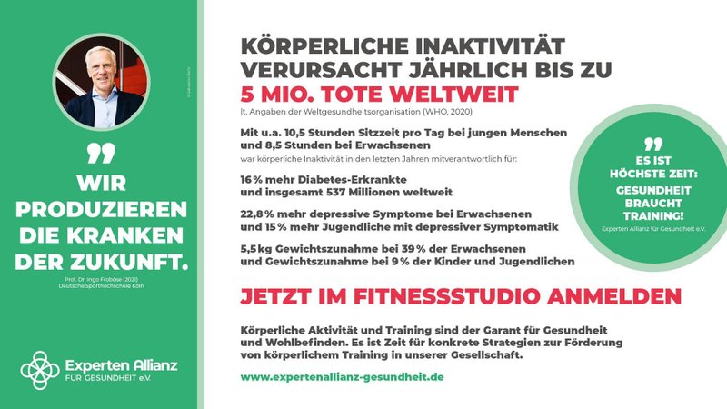 Um die Bedeutung von Muskeltraining für die Gesundheit zu verdeutlichen, führte der Experten Allianz Sport, Fitness & Gesundheit e.V. erneut eine große Kampagne durch, die am Weltgesundheitstag ihren Höhepunkt fand. Die Botschaft Gesundheit braucht Training muss überall ankommen und verstanden werden.